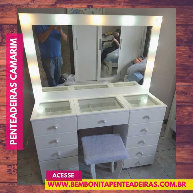 Penteadeira, camarim, penteadeira camarim, maquiagem, make-up, profissional, instagram, blogueira, maquiagem de luxo, maquiagem profissional, penteadeira com luz, camarim com luz, escrivaninha, espelho camarim, you tuber, espelho com luz